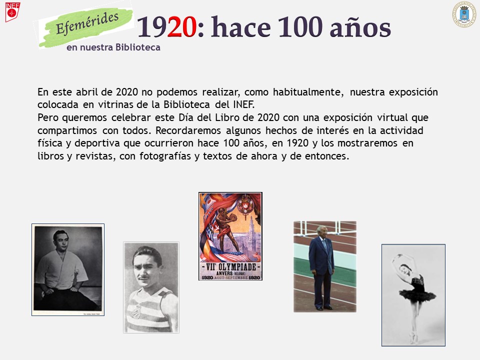 Recordaremos algunos hechos de interés en la actividad física y deportiva que ocurrieron hace 100 años, en 1920, y los mostraremos en libros y revistas, con fotografías y textos de ahora y de entonces.